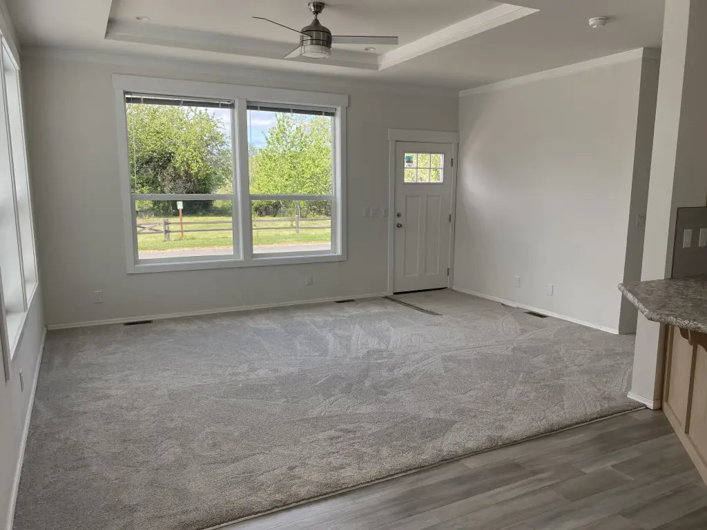 - Vaulted ceilings throughout with attractive tray ceiling in living room
