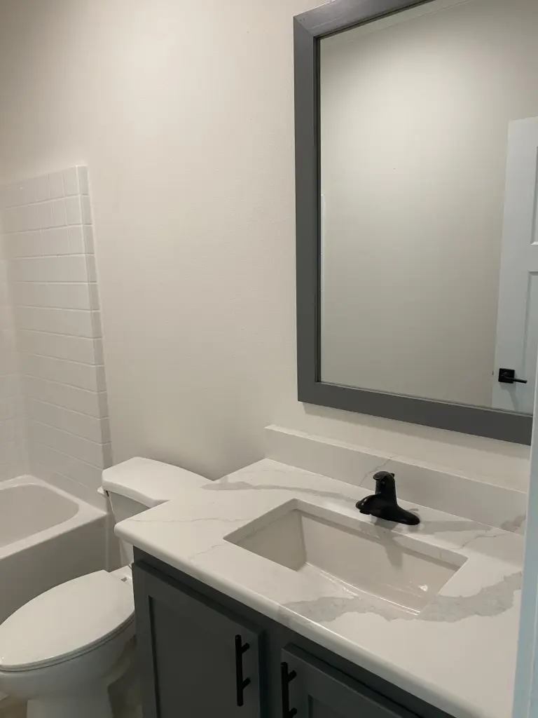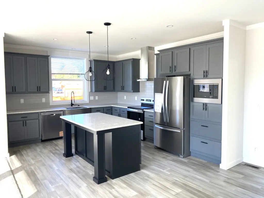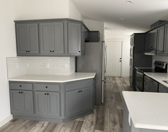 - Beautiful urban gray shaker cabinets throughout with soft close hinges and drawer guides